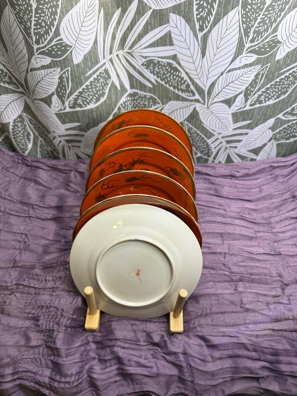 Bring an elegant touch of Asian artistry to your table or display cabinet with this set of 6 vintage Japanese porcelain plates.