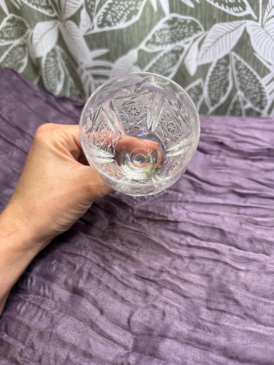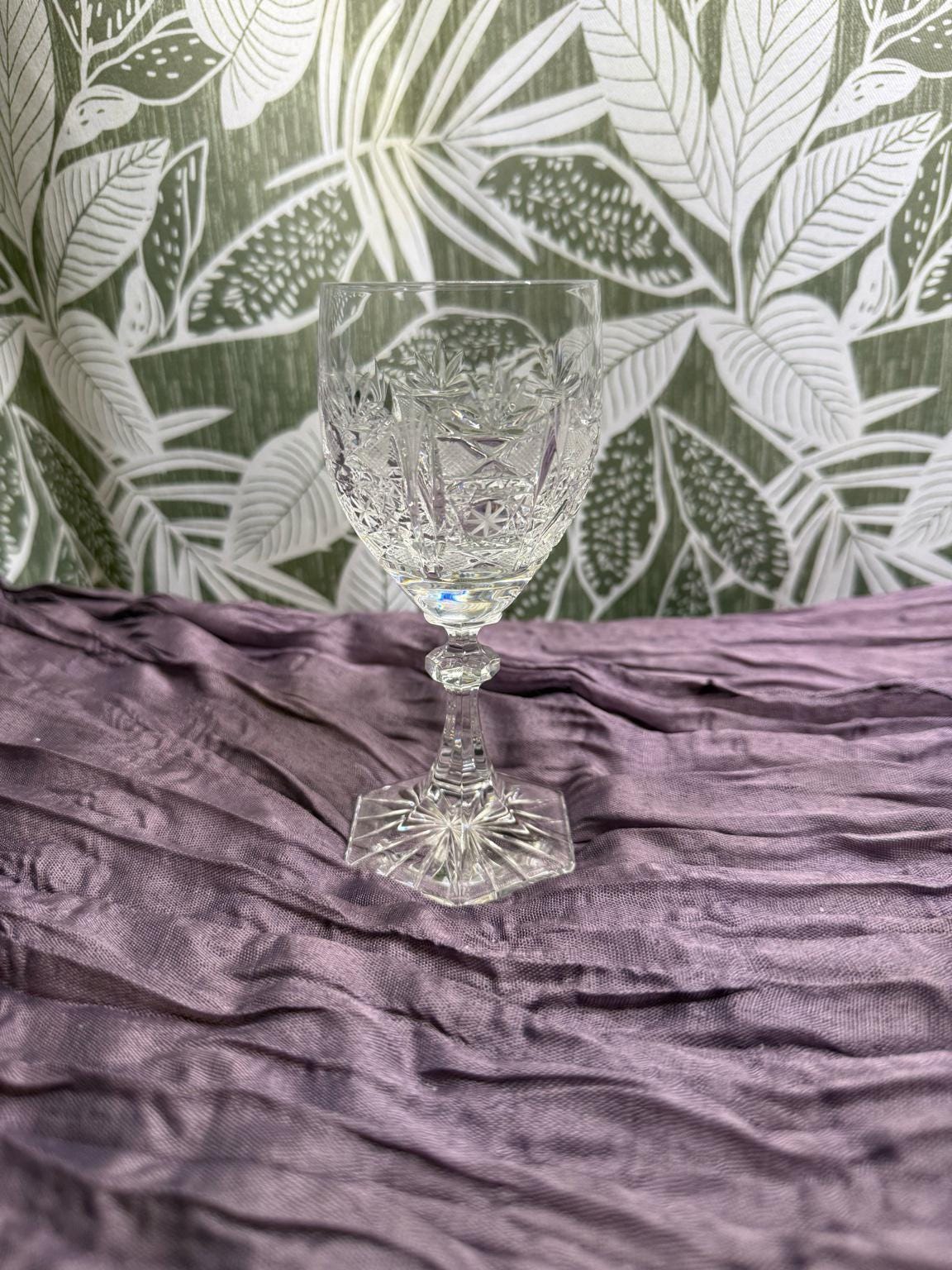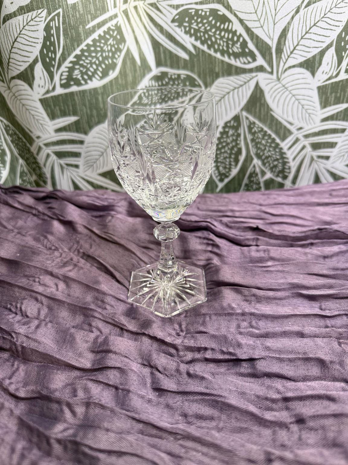 This beautiful goblet is an authentic Waterford Crystal piece, produced in Ireland during the late 1980s–1990s. Each one is hand-cut with intricate starbursts and crosshatch designs that shimmer brilliantly. The faceted stem and hexagonal foot make it feel as special as the moments it’s meant to celebrate.