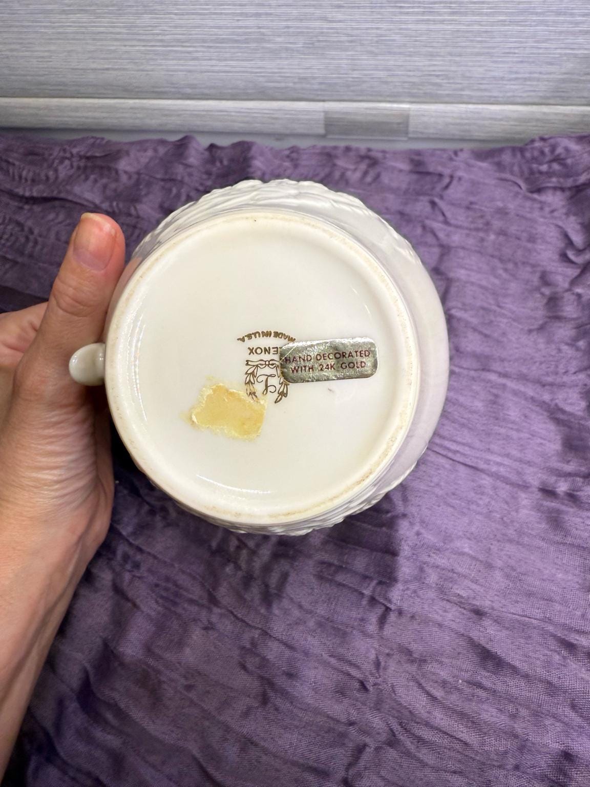 Condition: Excellent vintage condition — no chips, cracks, or crazing. Gold trim is intact and bright. Original 24k gold foil label still present.