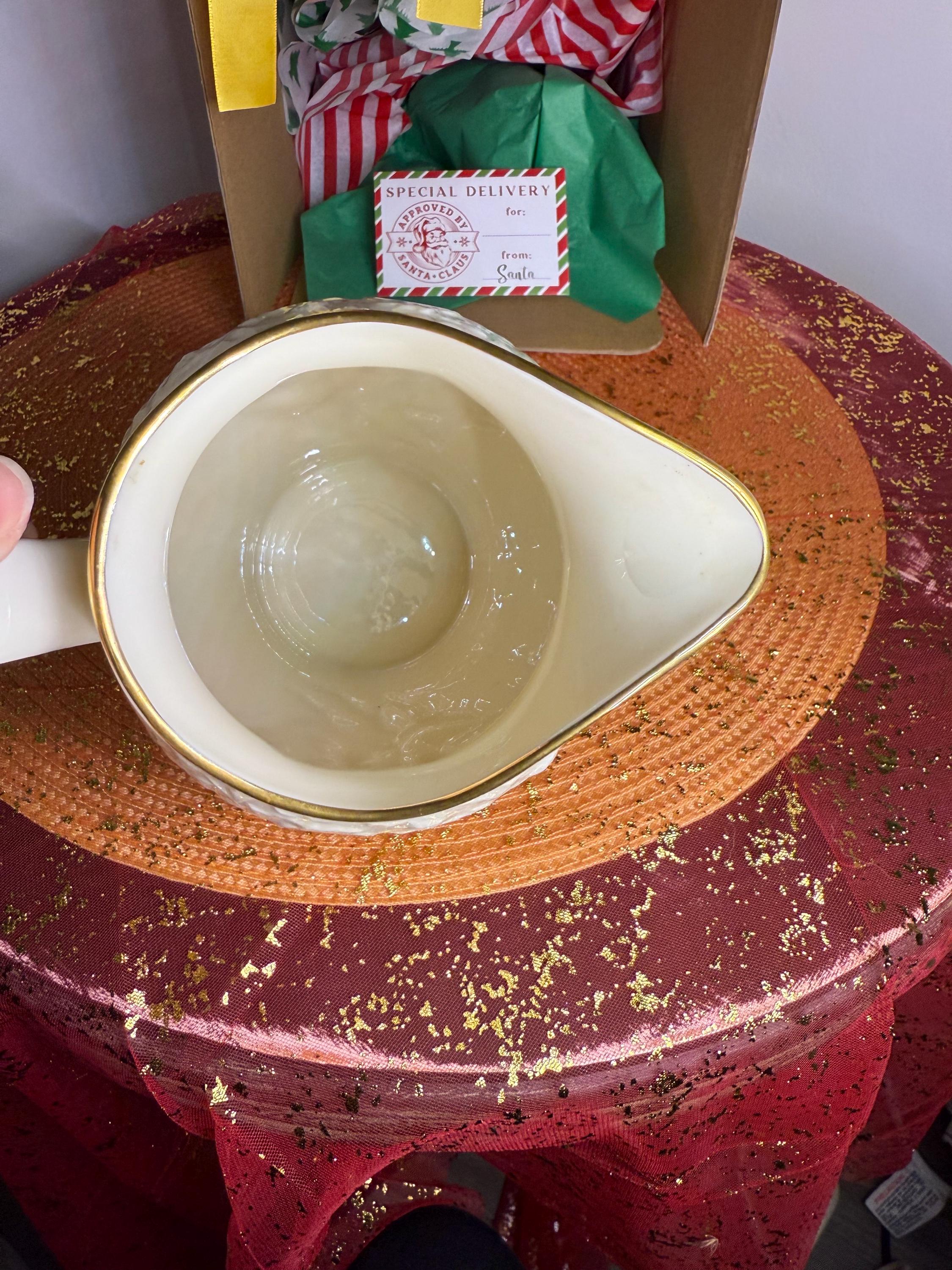 Care Instructions: Hand wash only to preserve the gold trim.