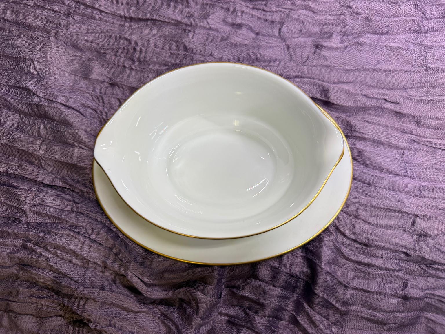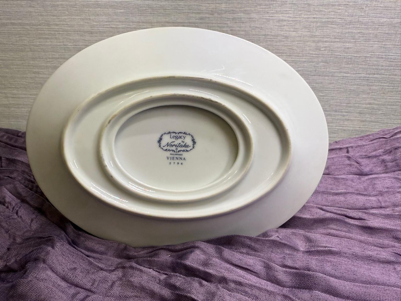 This piece comes from Noritake’s Legacy Vienna collection (pattern 2796), a design that was beloved in the 1970s–1980s and has since been discontinued — making it all the more special. The classic shape with its attached underplate not only looks graceful but also keeps your table neat and tidy while serving.