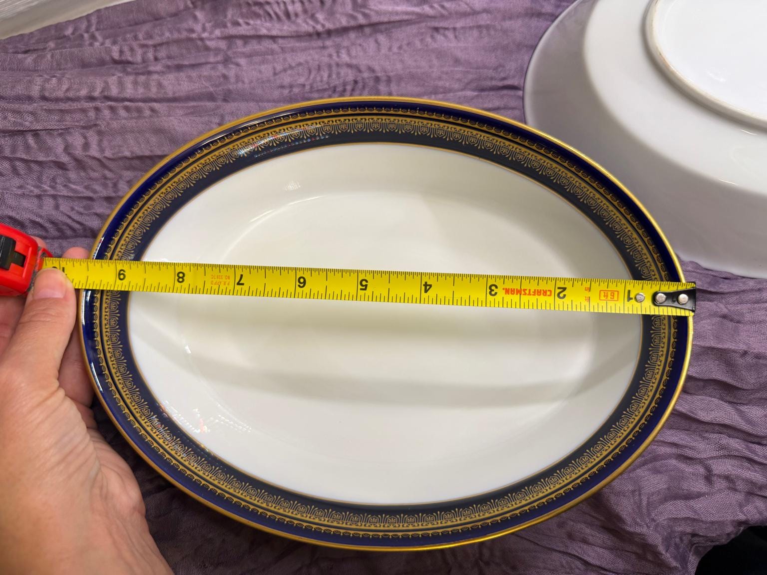Bring a touch of timeless beauty to your table with these stunning Noritake Legacy “Vienna” (2796) oval serving bowls. With their deep cobalt blue band and intricate gold trim, they’re the kind of pieces that instantly make a meal feel special. Whether you’re serving family dinners, hosting a holiday feast, or creating a beautiful wedding gift, these bowls are made to shine.