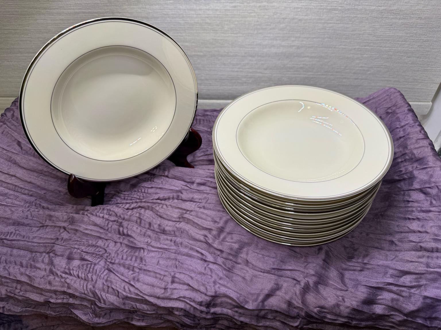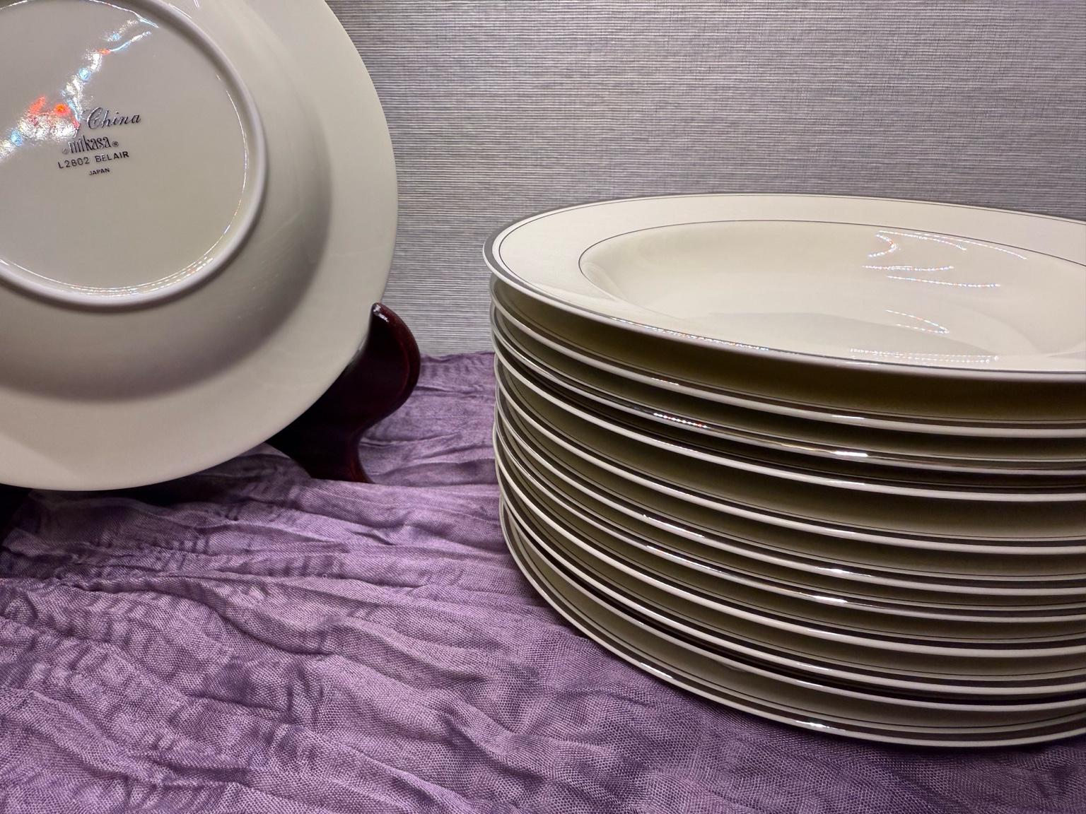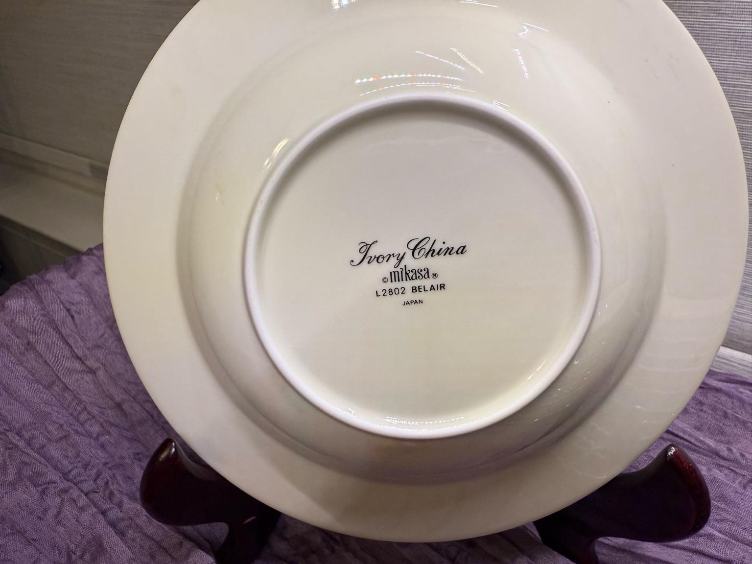 These bowls feature a warm ivory body accented with a sleek platinum/silver trim, embodying the understated sophistication Mikasa is known for. Produced in Japan, this discontinued pattern is highly sought after by collectors and perfect for adding a touch of refinement to your dining experience.