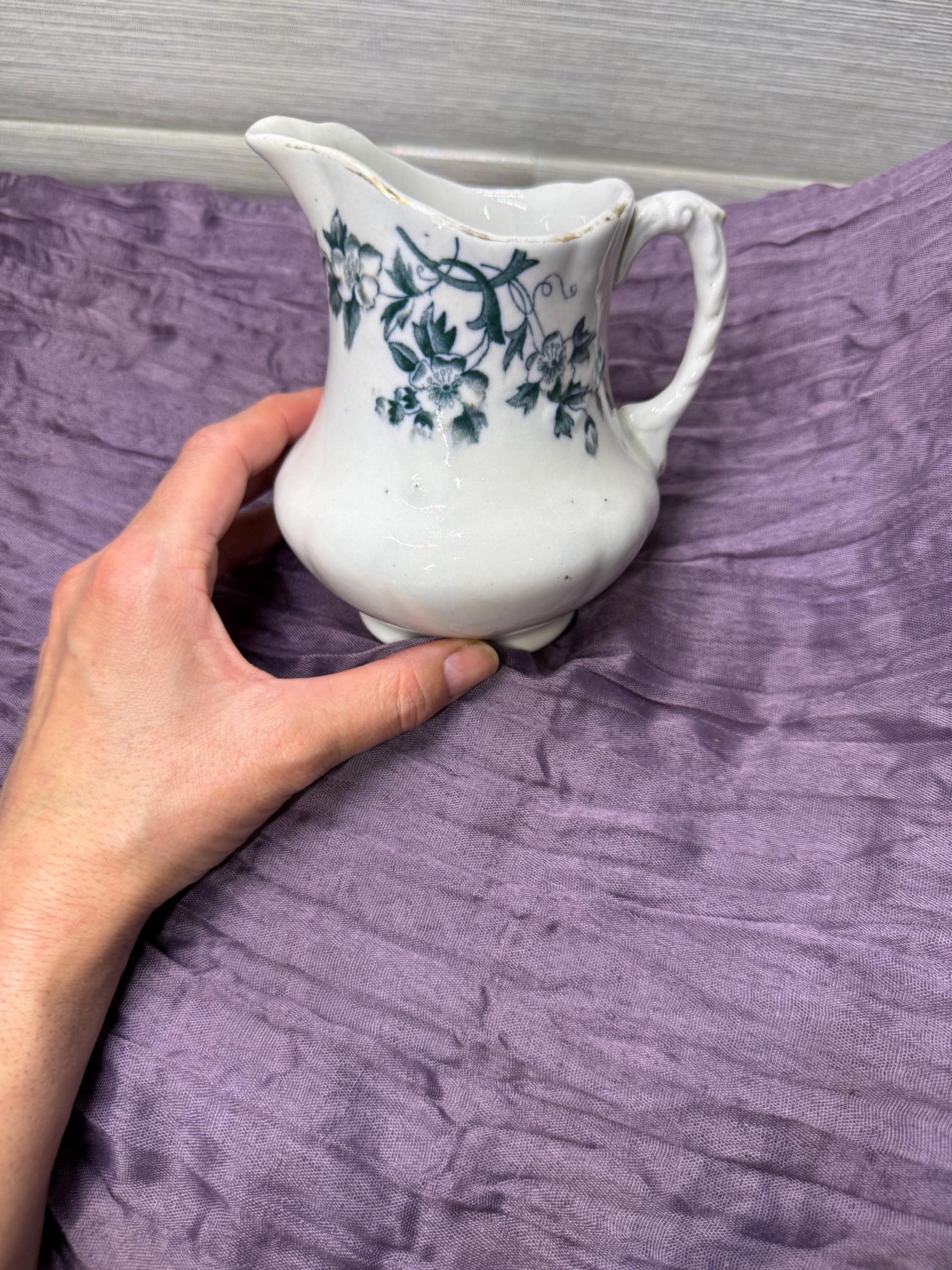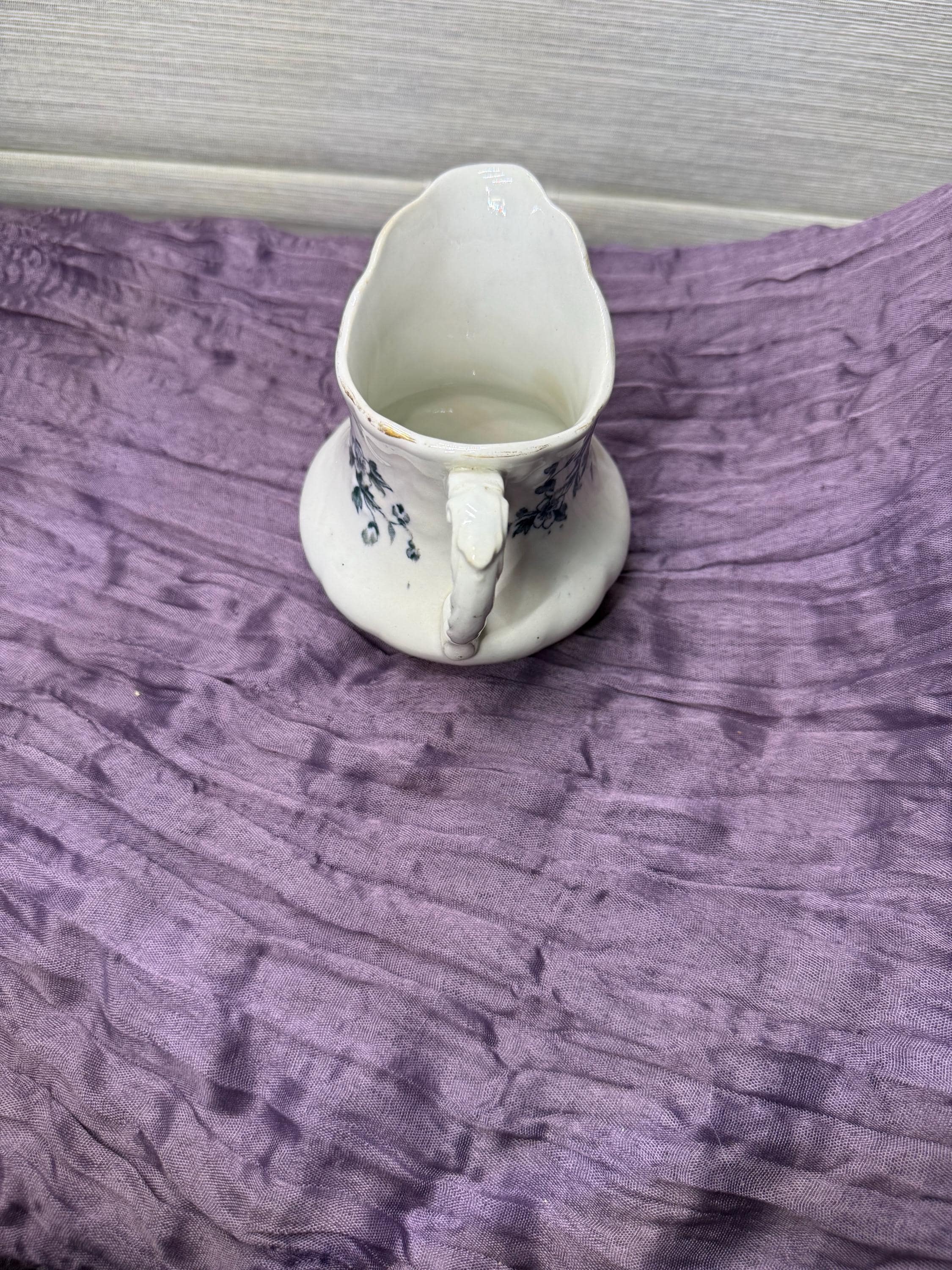 This petite pitcher stands about 5 ½ inches tall and weighs just over 10 ounces. Perfect for serving cream or syrup, or as a decorative piece to display with flowers or in a vintage kitchen collection.