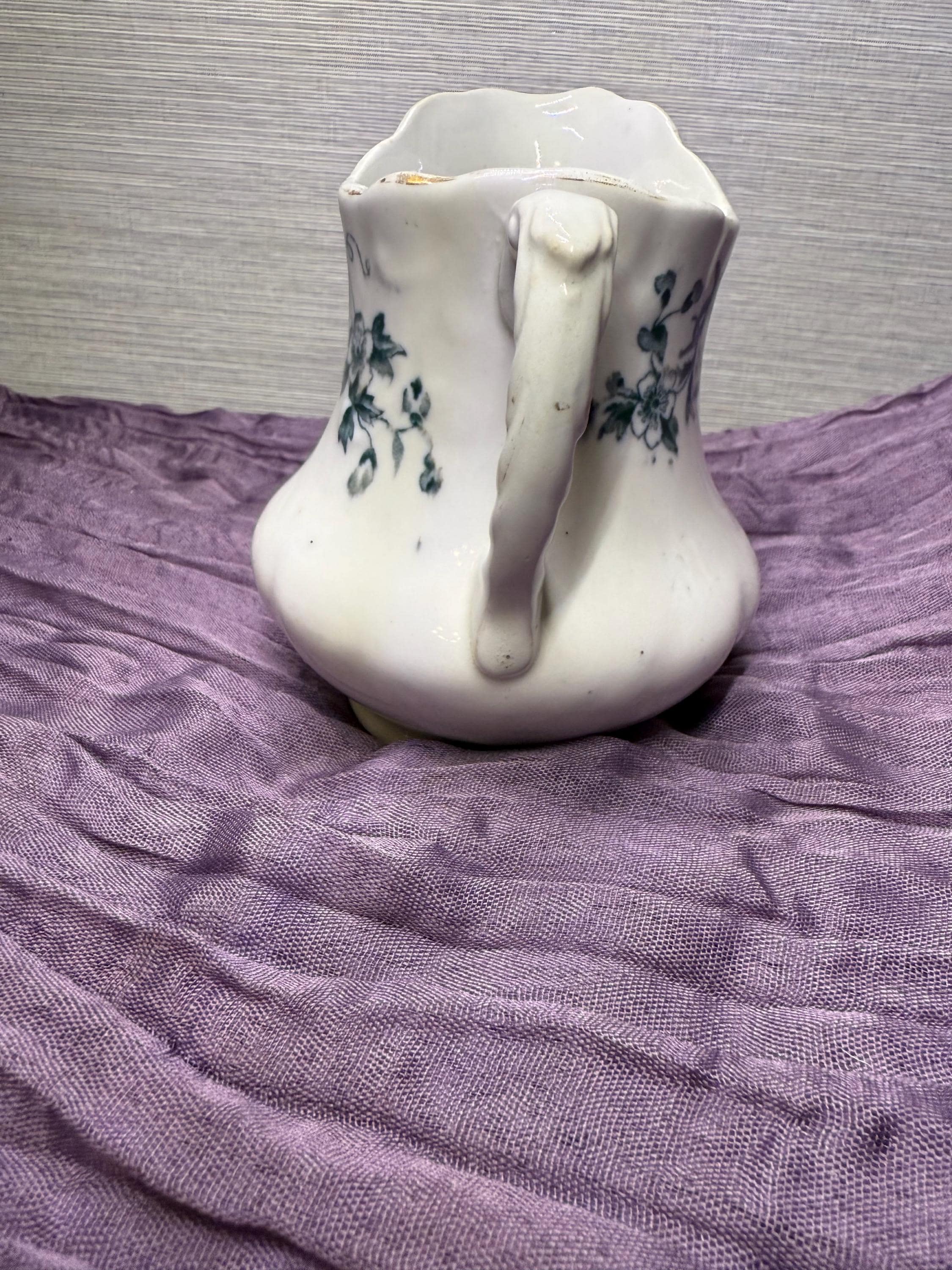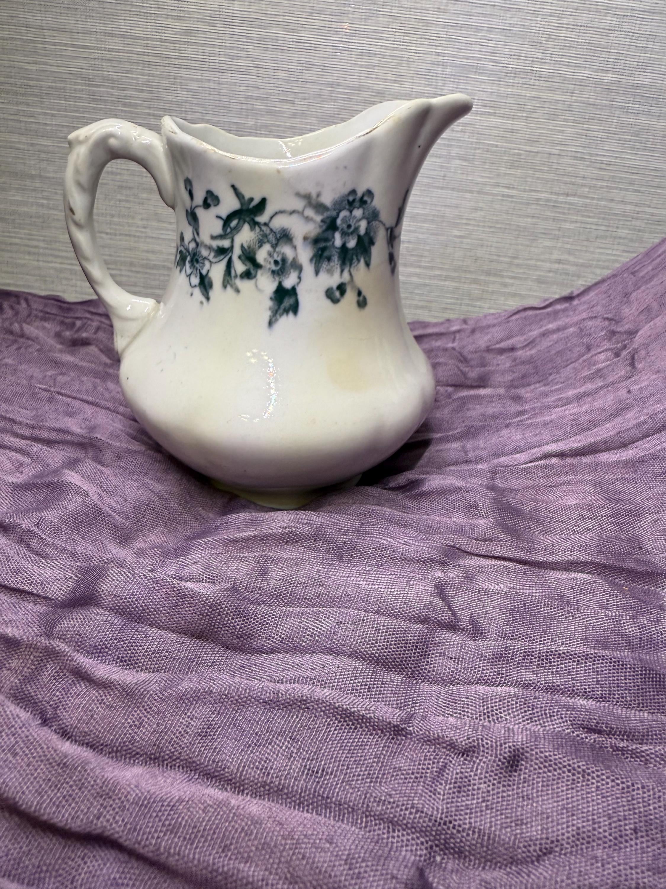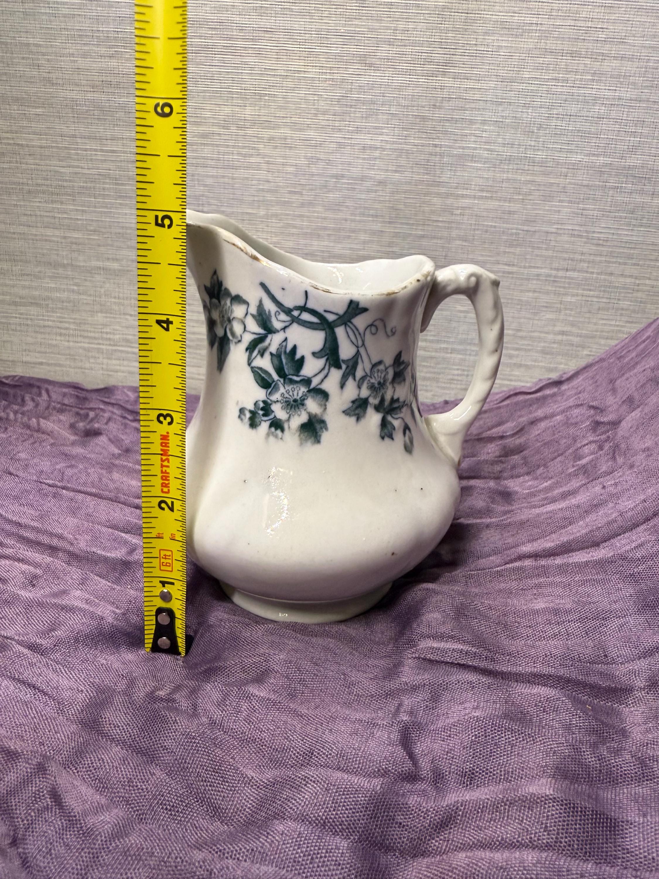 Bring a touch of English history to your table with this charming antique pitcher from J&G Meakin of Staffordshire, England. The “Severn” pattern features delicate green floral transfers over classic white ironstone, showcasing the elegance of late 19th century design.