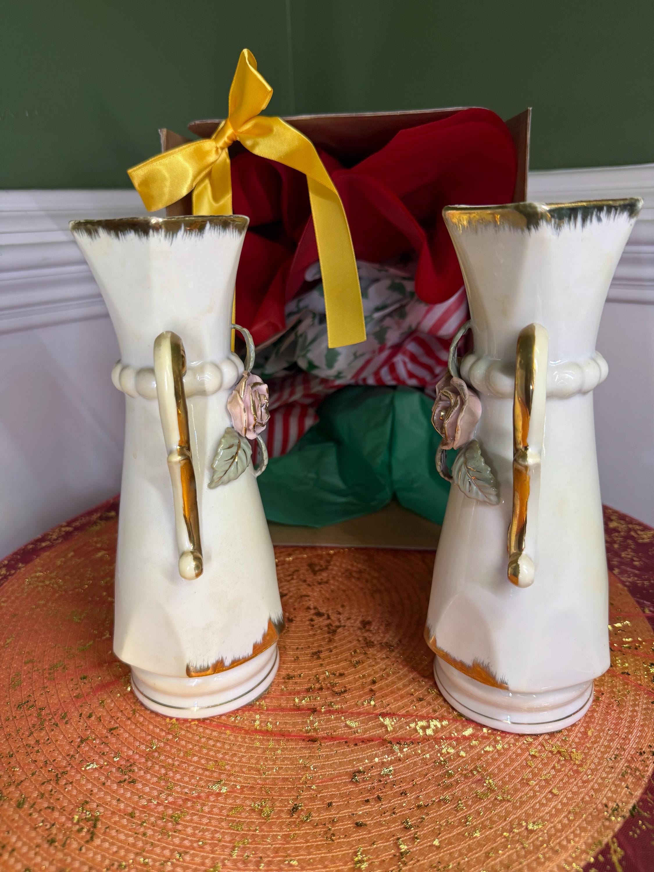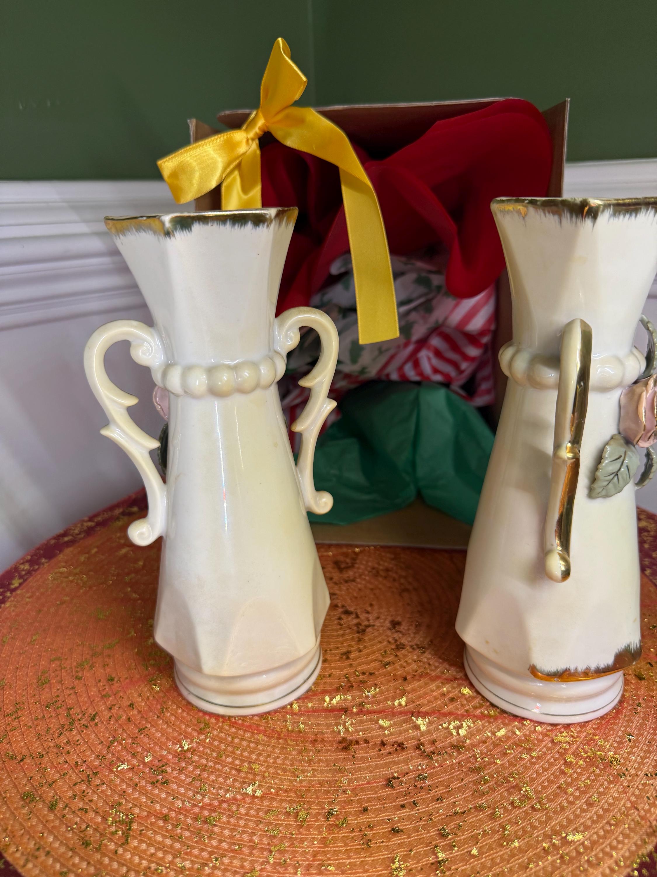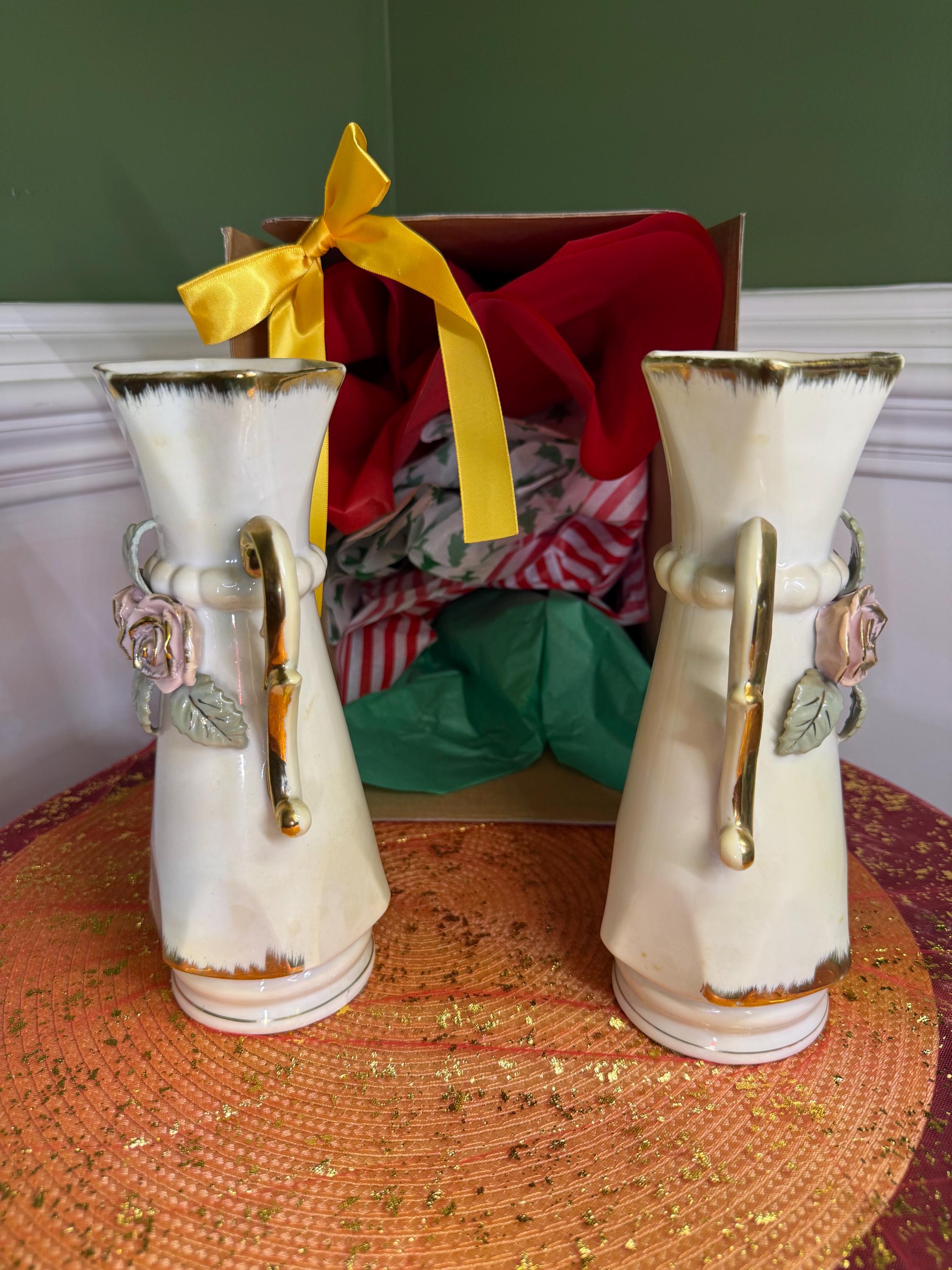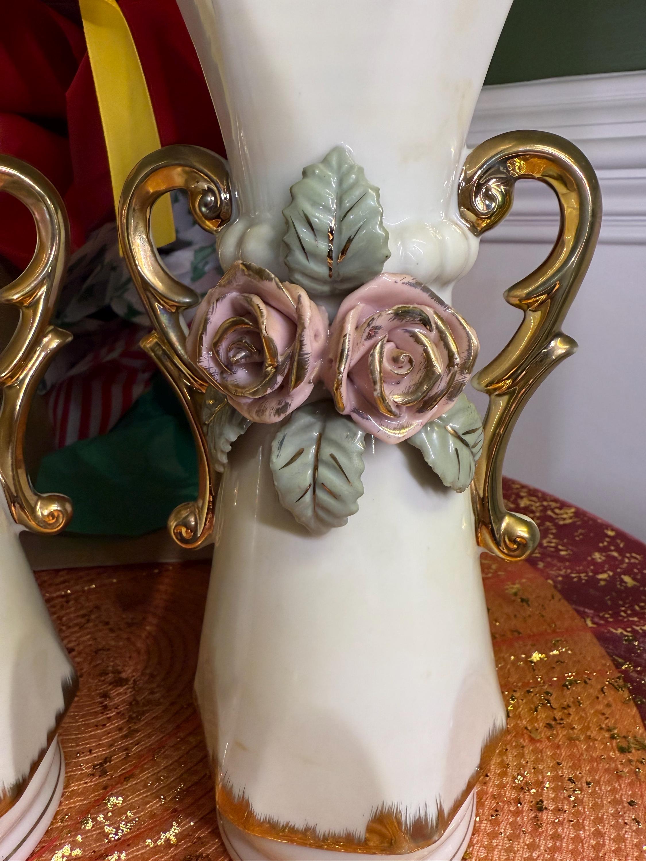 Looking to add a little romance (and a lot of style) to your space? These vintage porcelain vases are giving all the shabby chic vibes! With their hand-applied pink roses, leafy details, and swoon-worthy gold scroll handles, they’re ready to bring cottagecore charm or Victorian elegance straight to your shelf.