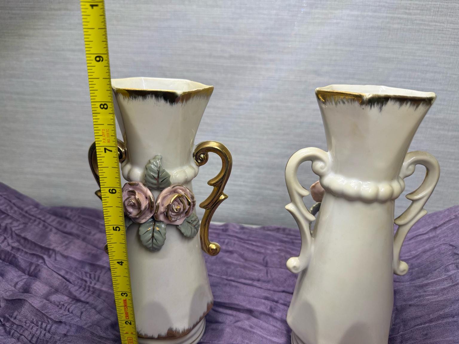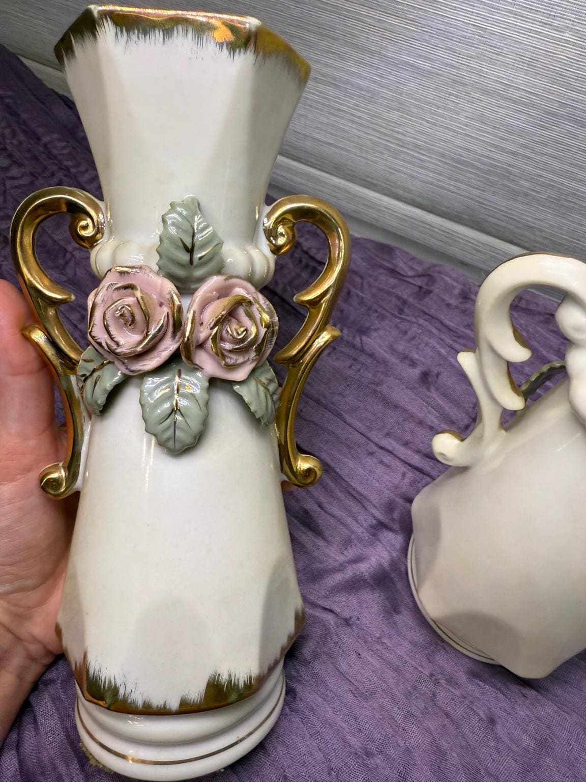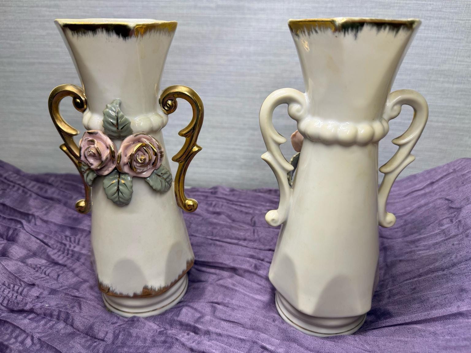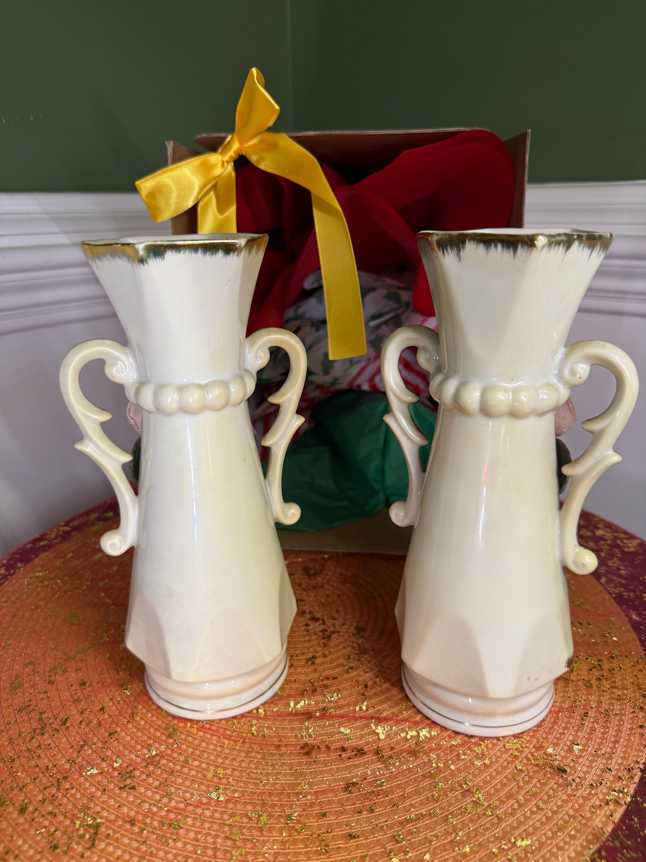 Looking to add a little romance (and a lot of style) to your space? These vintage porcelain vases are giving all the shabby chic vibes! With their hand-applied pink roses, leafy details, and swoon-worthy gold scroll handles, they’re ready to bring cottagecore charm or Victorian elegance straight to your shelf.