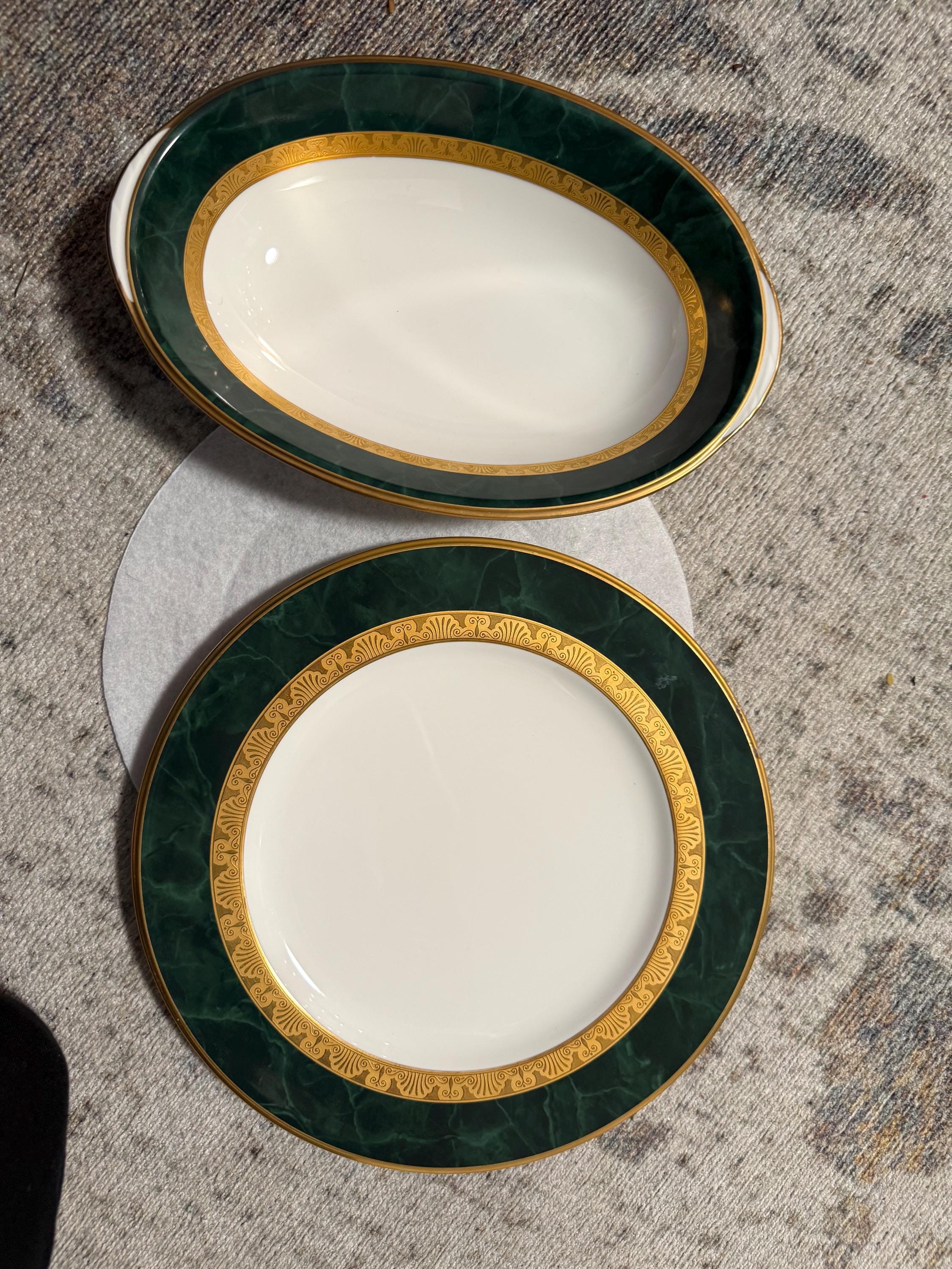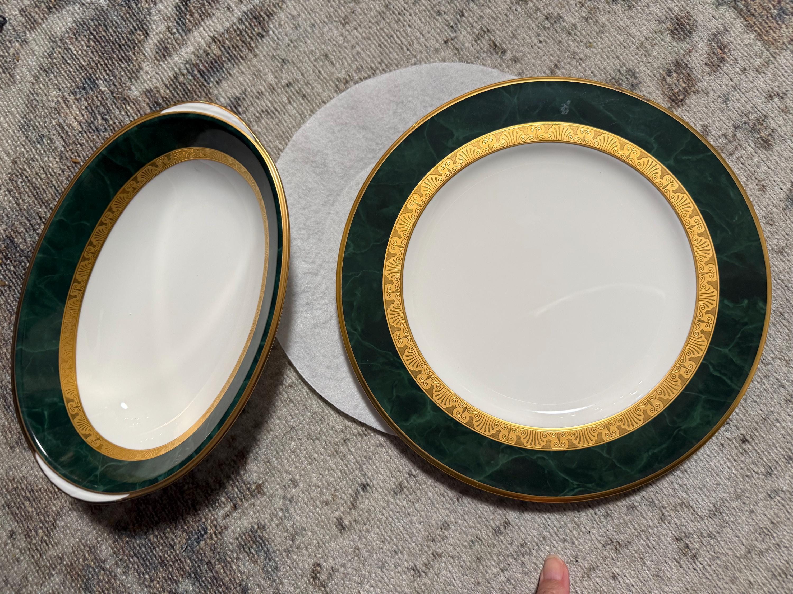Timeless elegance meets collectibility in this curated vintage Noritake fine china set, featuring pieces from both the Legacy Vienna and Imperial Collection Emerald Green Marble lines. Crafted in Japan during the 1980s–1990s, each piece showcases Noritake’s signature craftsmanship — rich cobalt and emerald tones, luminous porcelain glaze, and intricate 24K gold detailing.