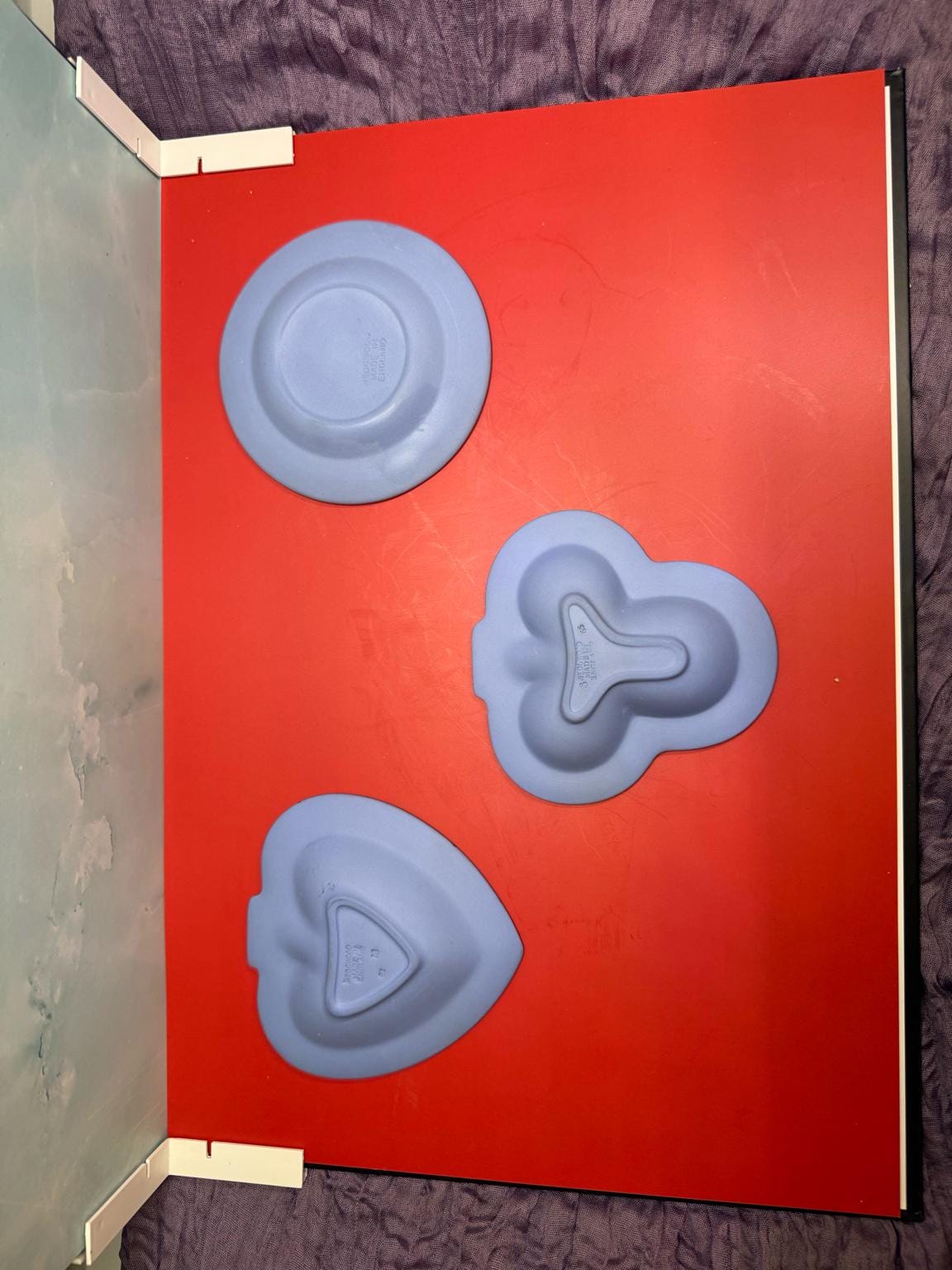 Heart Dish (1954) – approx. 4.75” tall, laurel border with central classical relief. Dated by impressed letter M = 1954.