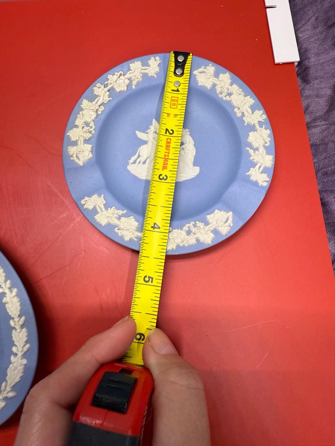 Round Dish (1960s–1970s) – approx. 4.75” across, grapevine border with mythological centerpiece. No date letter, consistent with later 20th-century Wedgwood production.