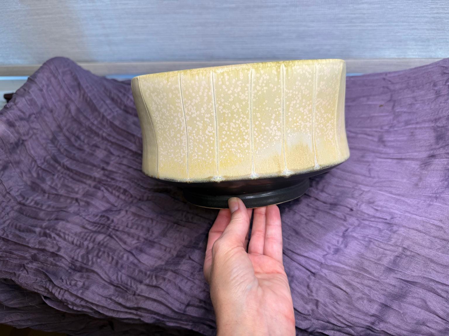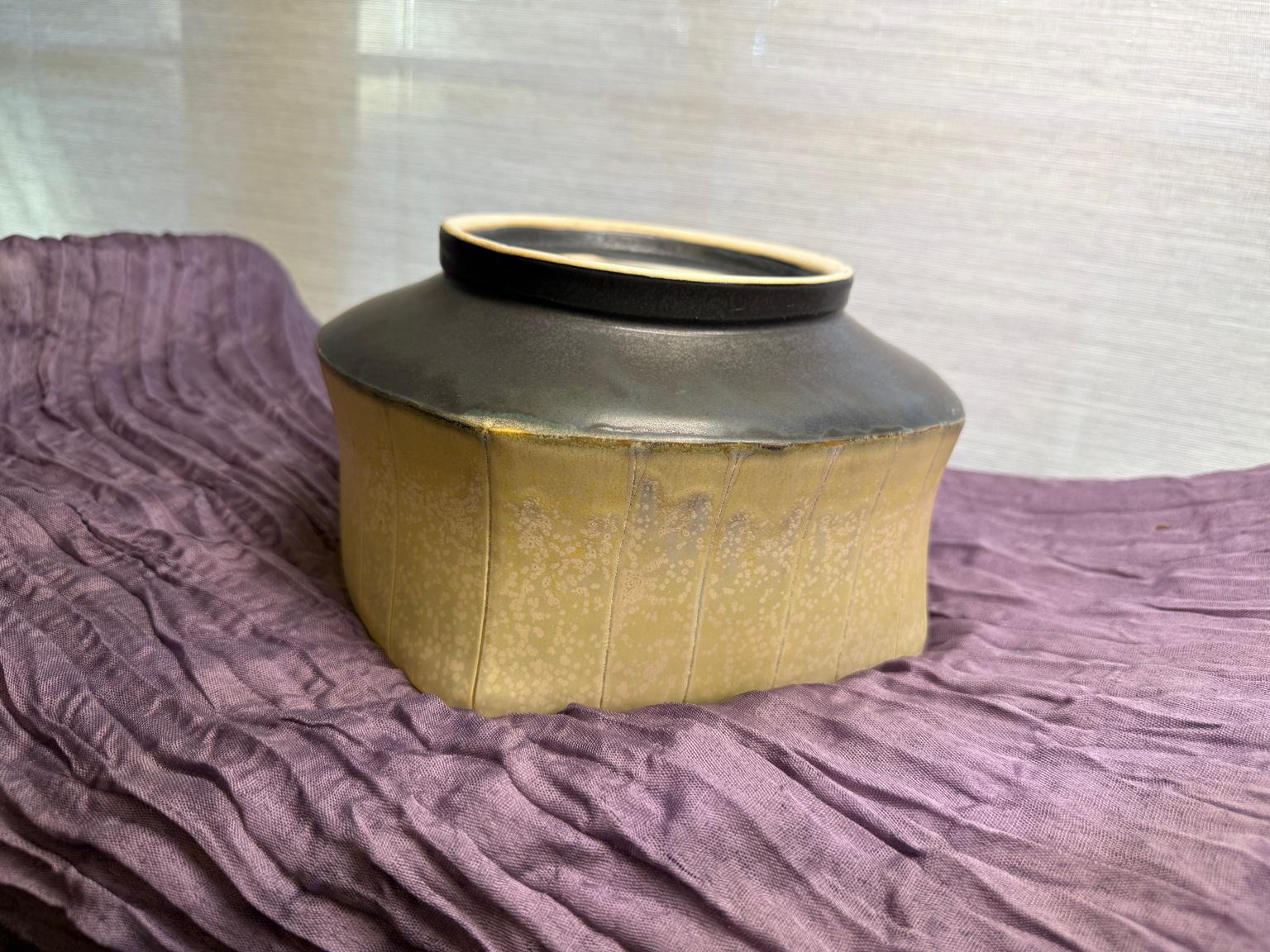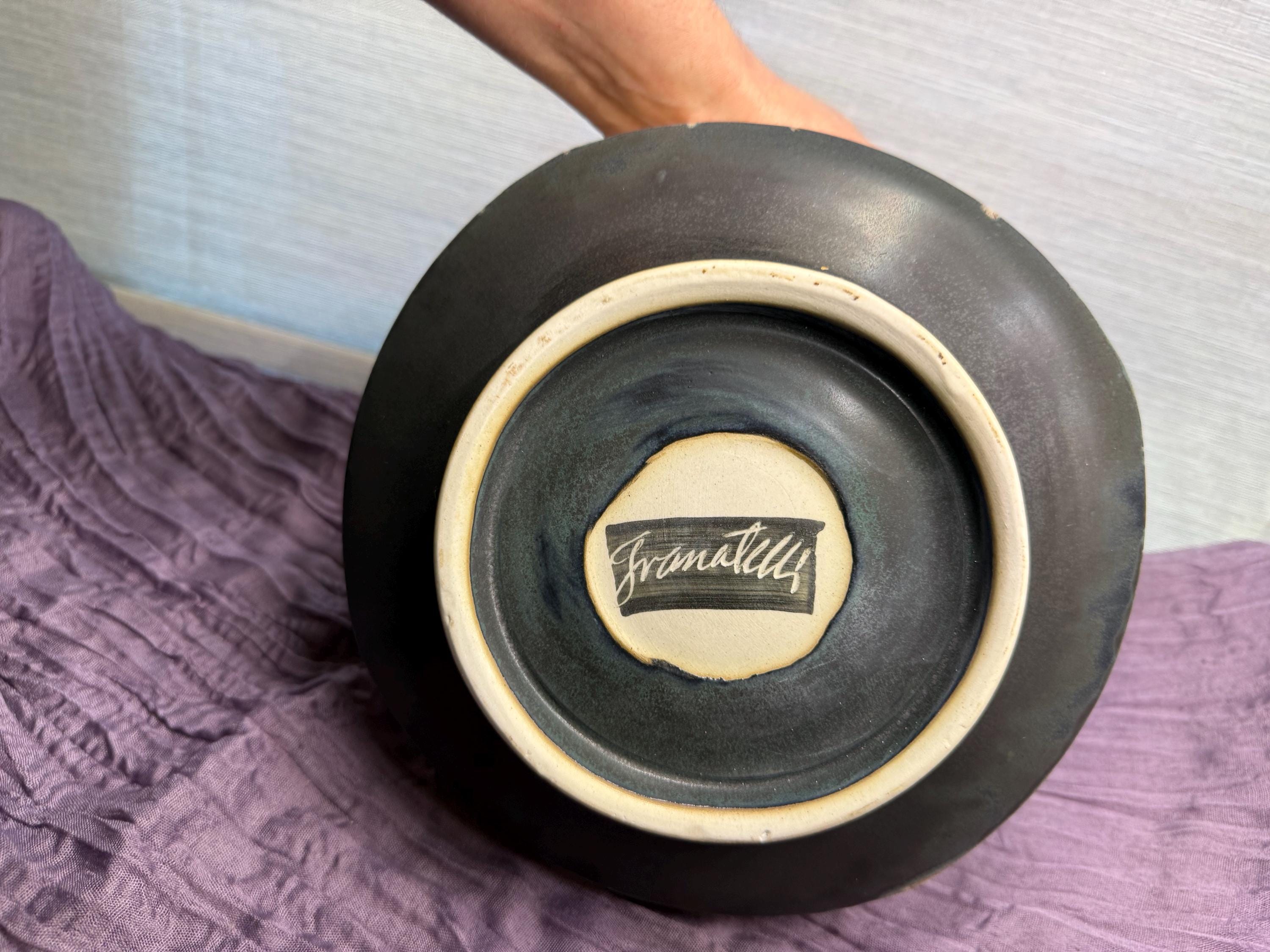 The outside tells its own story: vertical etched lines run down the surface with a softly mottled glaze finish, giving it a natural, organic feel. Flip it over, and you’ll find the bold Granatelli signature, a mark of authenticity and artistry.