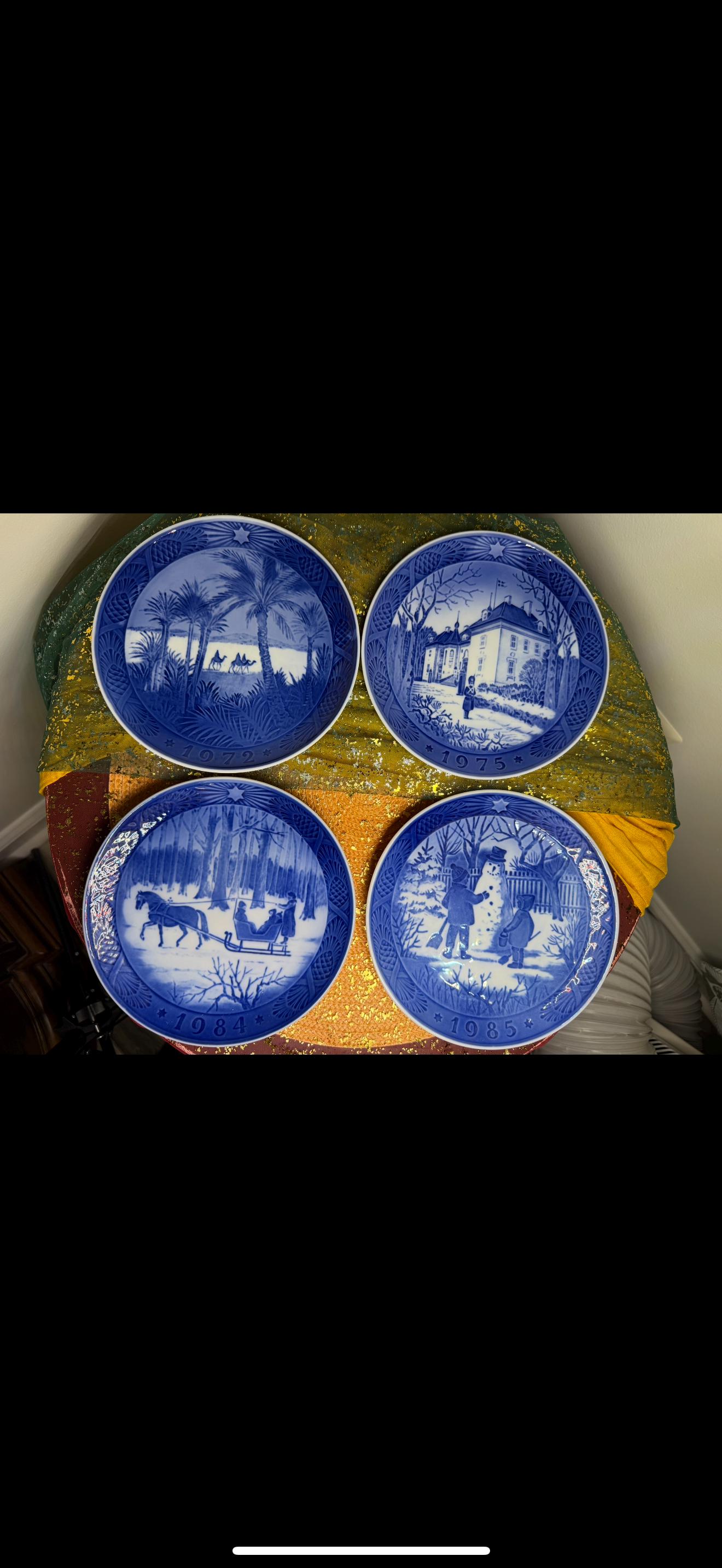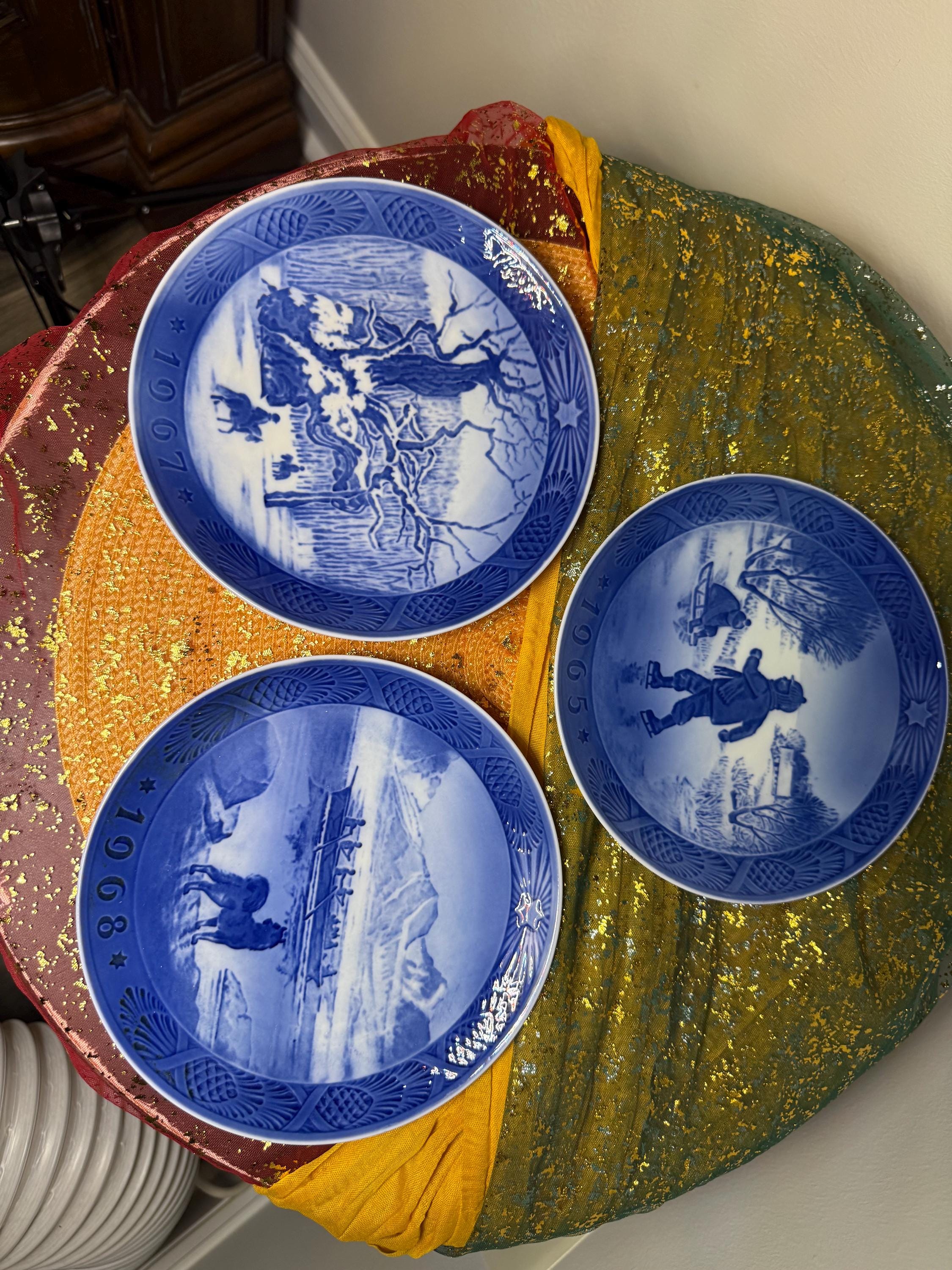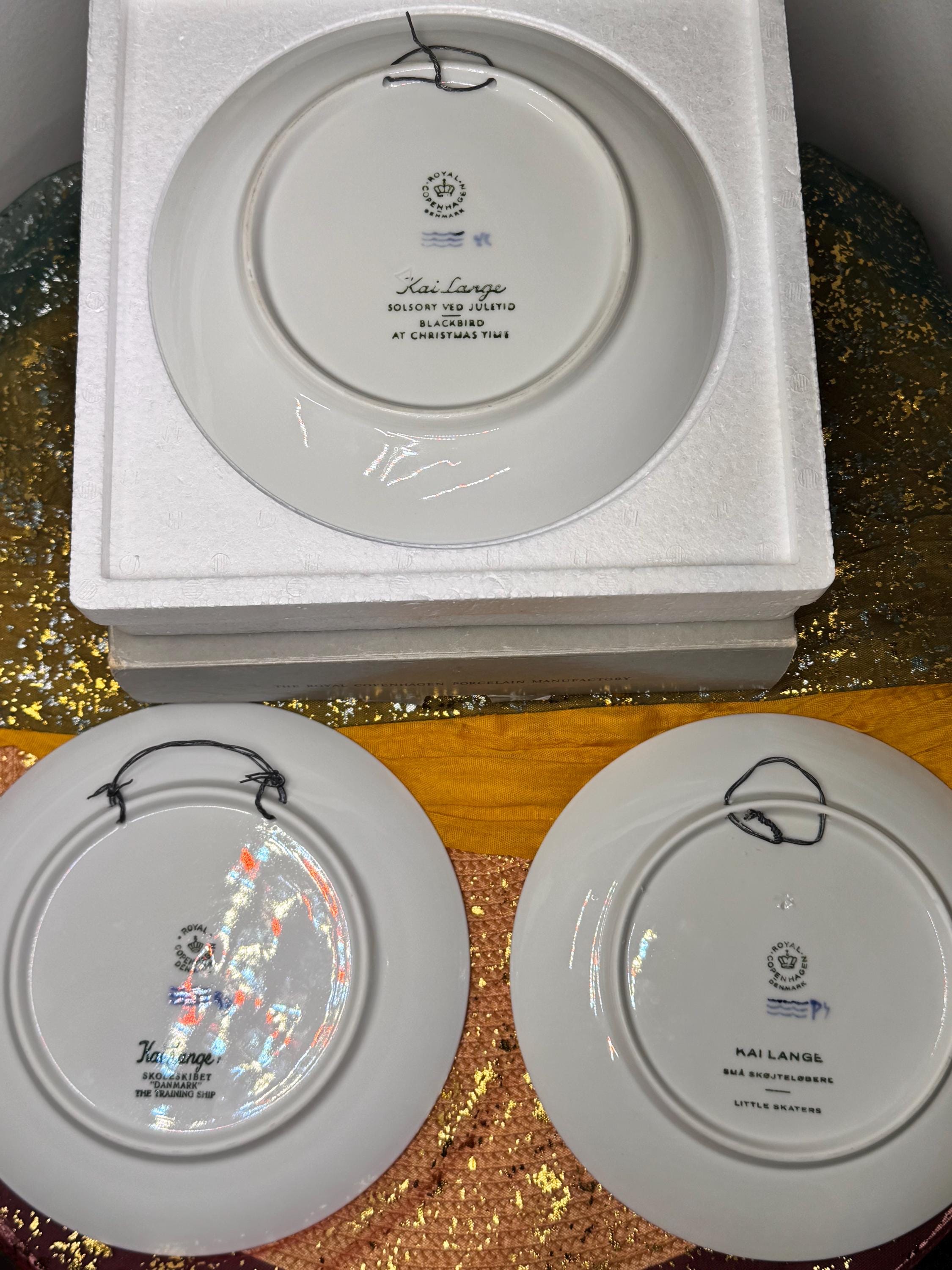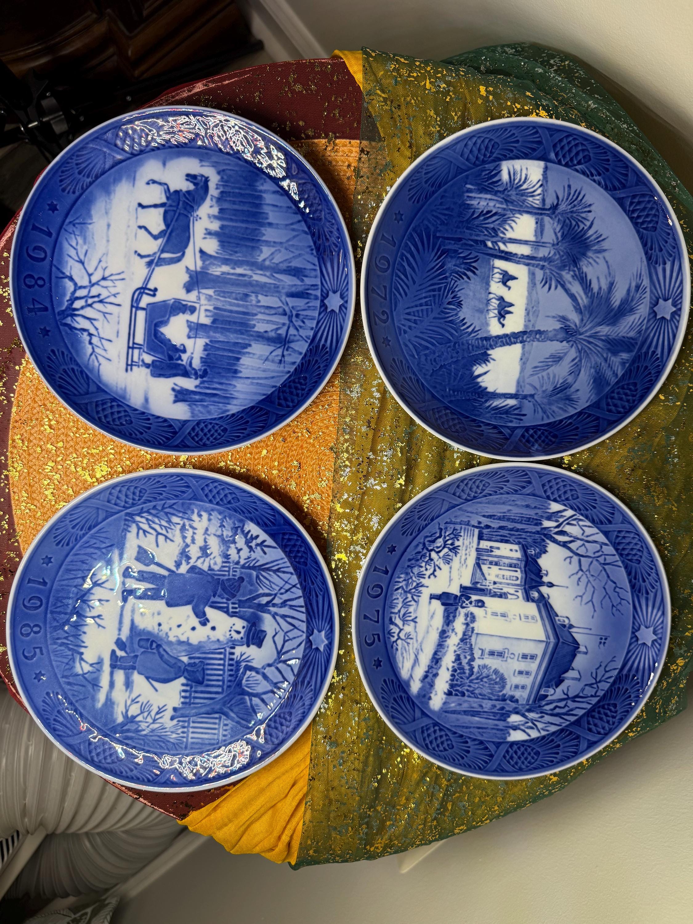 Celebrate decades of Danish holiday artistry with this beautiful collection of Royal Copenhagen and Bing & Grøndahl Christmas plates, spanning years between 1965 and 2004. Each plate is hand-painted in soft cobalt blue and finished with a luminous glaze, capturing timeless winter scenes — from cozy village homes and children playing in the snow, to Father Christmas and the iconic Little Mermaid.