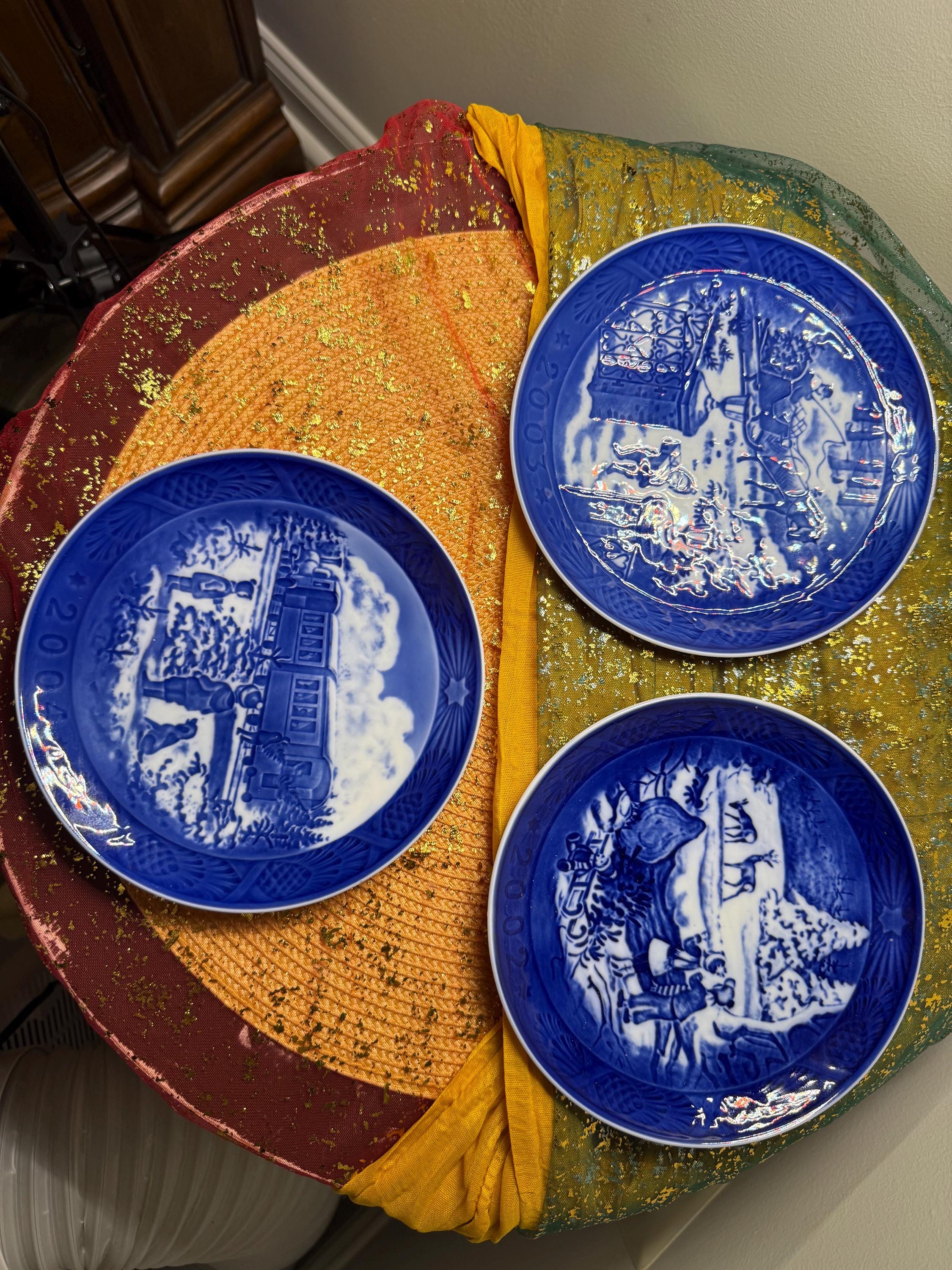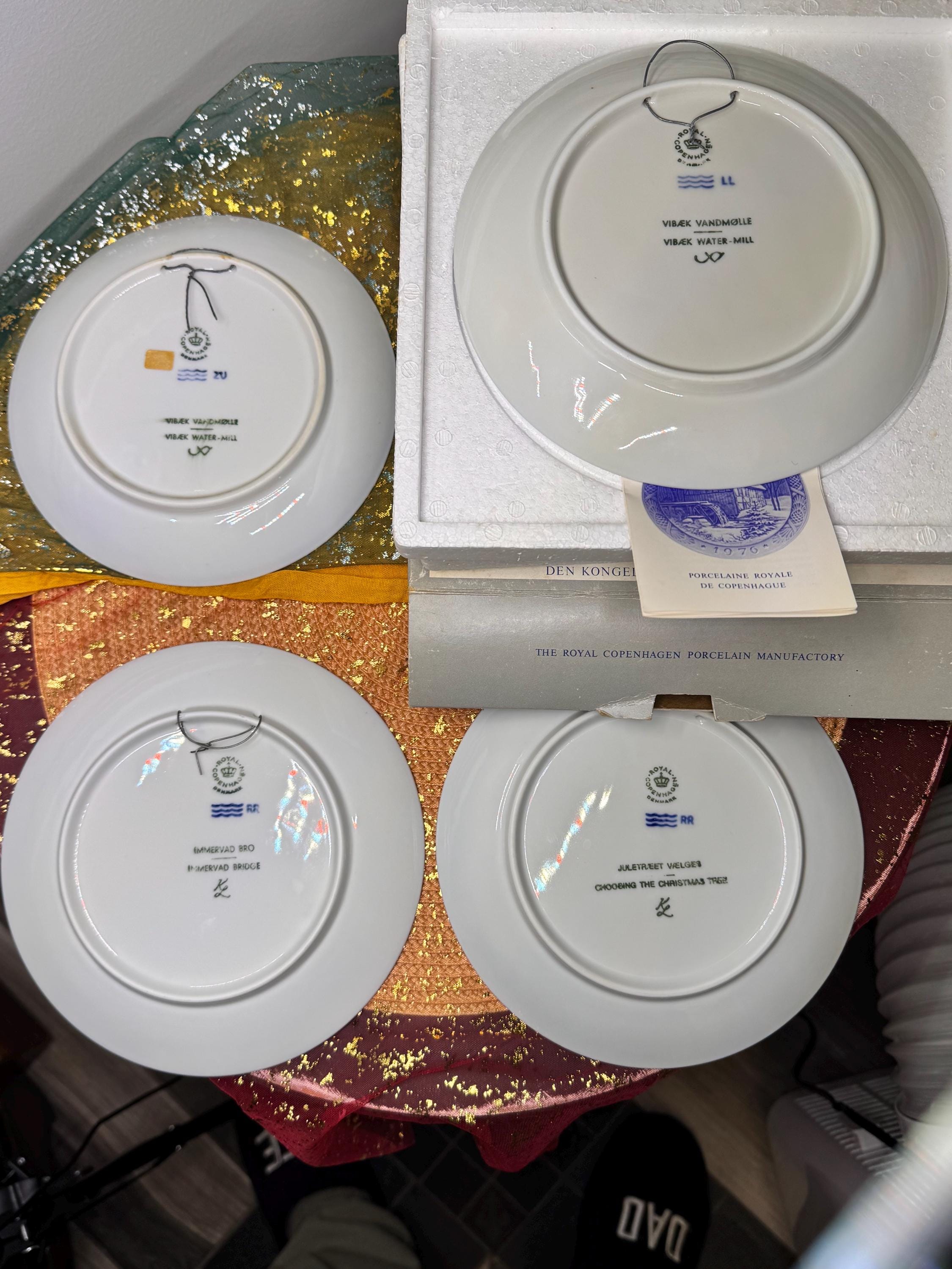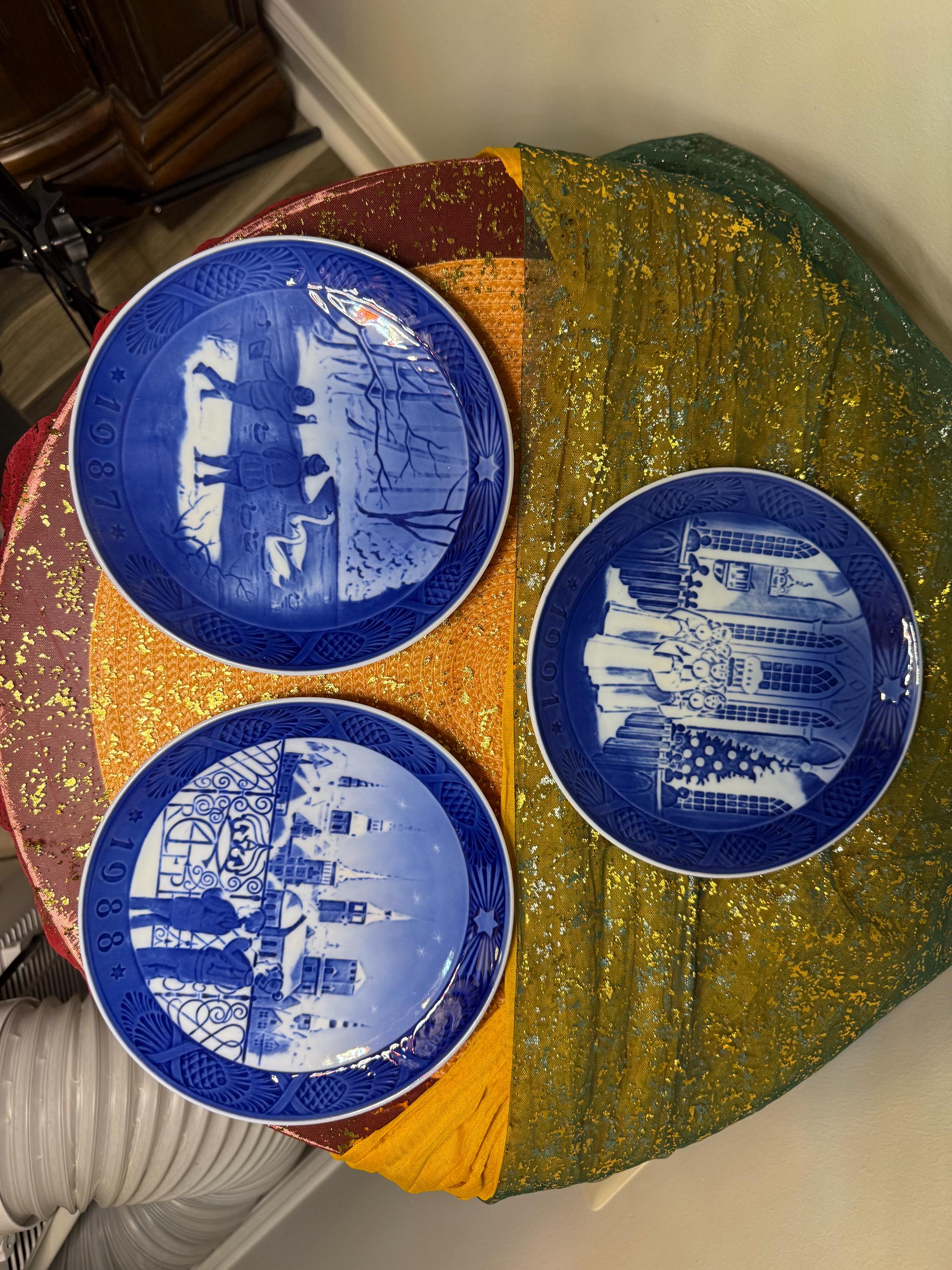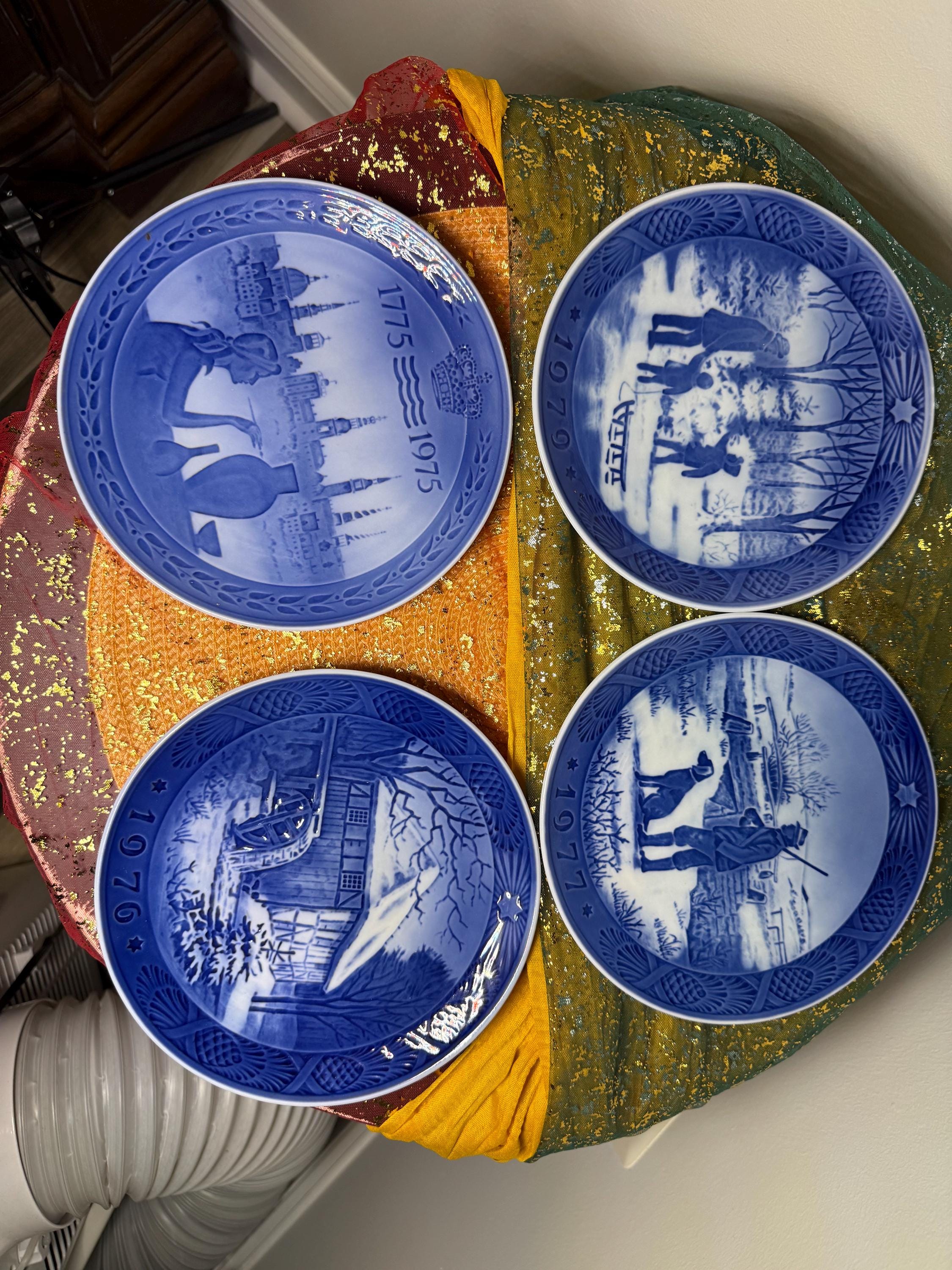 Celebrate decades of Danish holiday artistry with this beautiful collection of Royal Copenhagen and Bing & Grøndahl Christmas plates, spanning years between 1965 and 2004. Each plate is hand-painted in soft cobalt blue and finished with a luminous glaze, capturing timeless winter scenes — from cozy village homes and children playing in the snow, to Father Christmas and the iconic Little Mermaid.