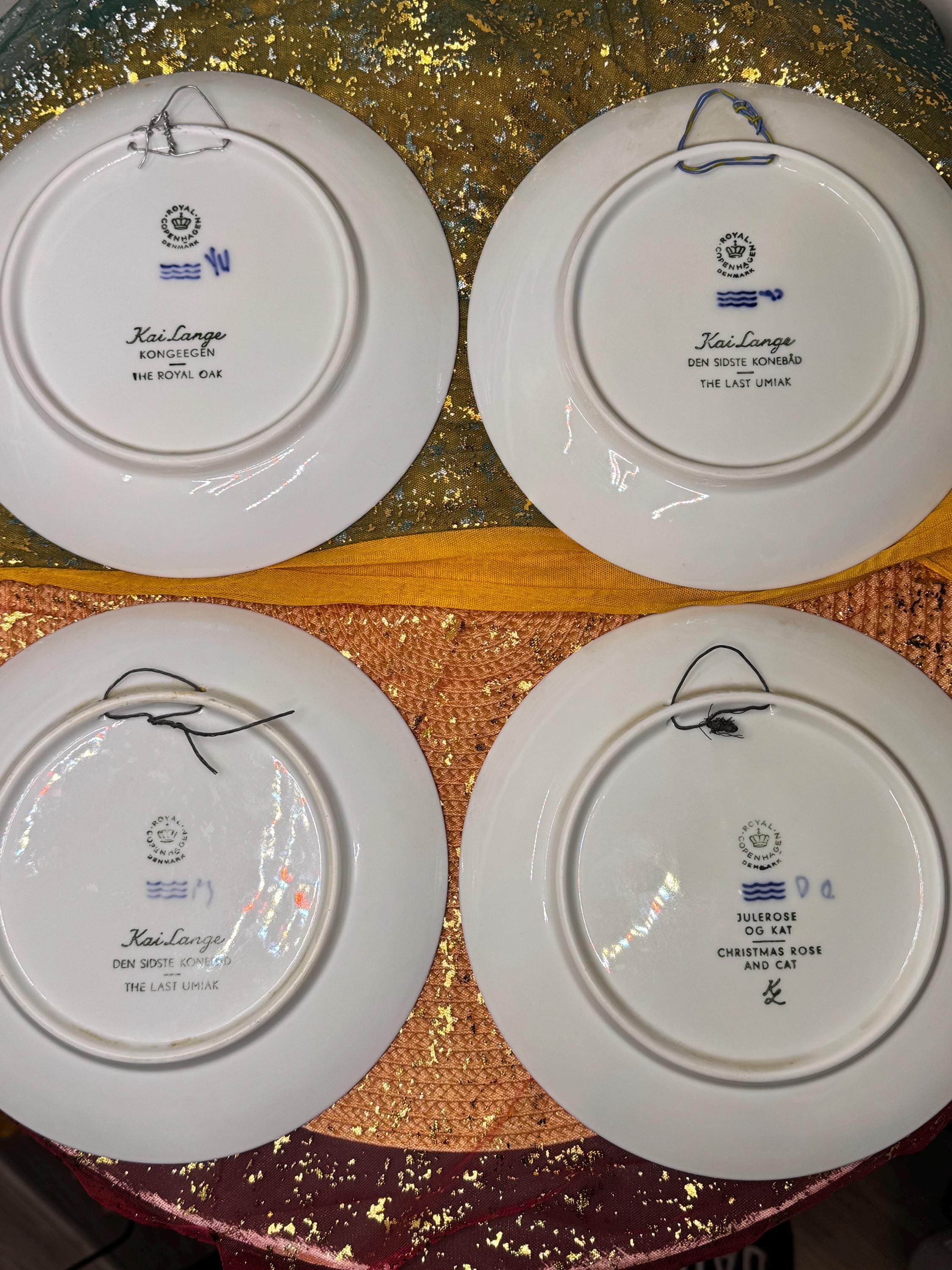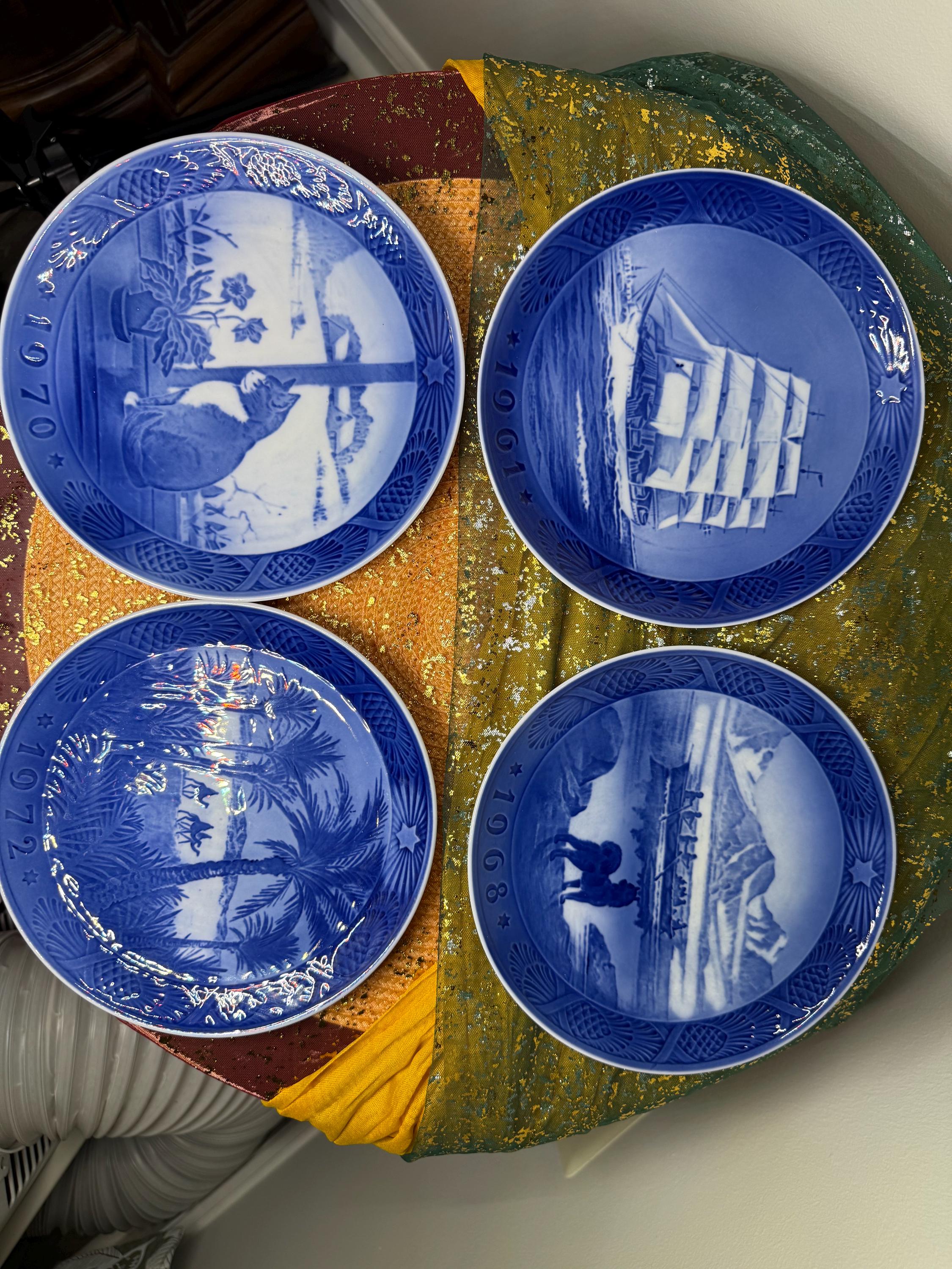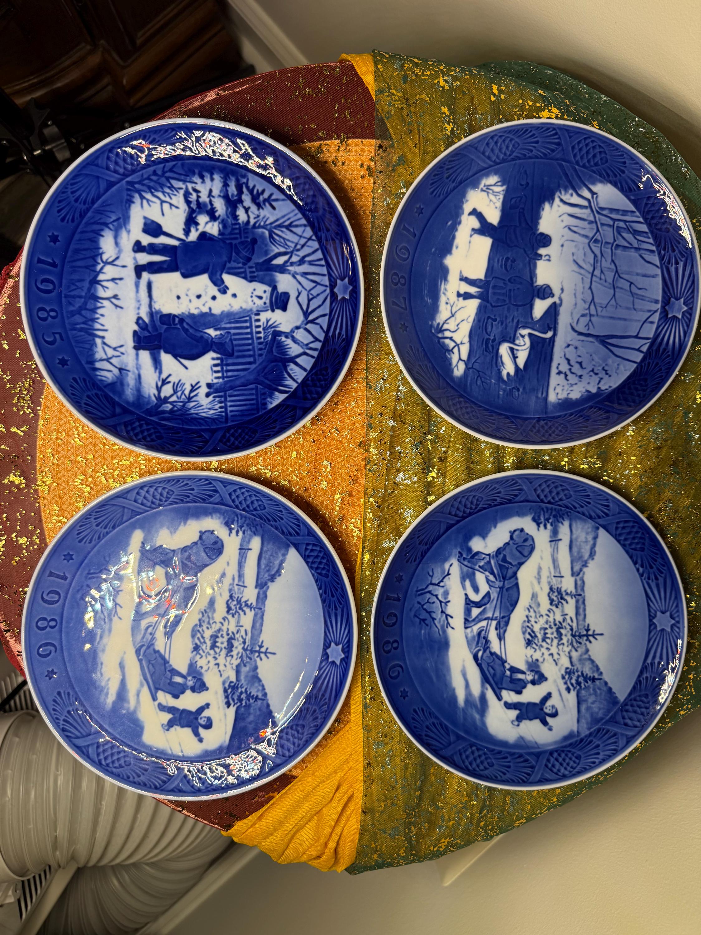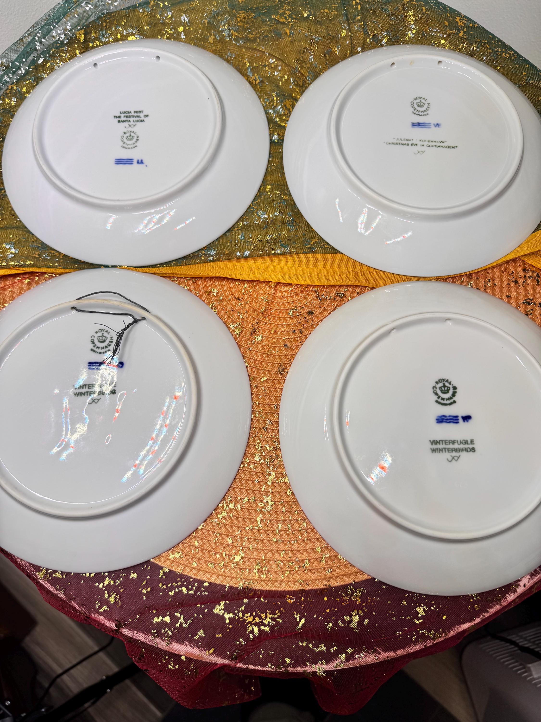 Celebrate decades of Danish holiday artistry with this beautiful collection of Royal Copenhagen and Bing & Grøndahl Christmas plates, spanning years between 1965 and 2004. Each plate is hand-painted in soft cobalt blue and finished with a luminous glaze, capturing timeless winter scenes — from cozy village homes and children playing in the snow, to Father Christmas and the iconic Little Mermaid.