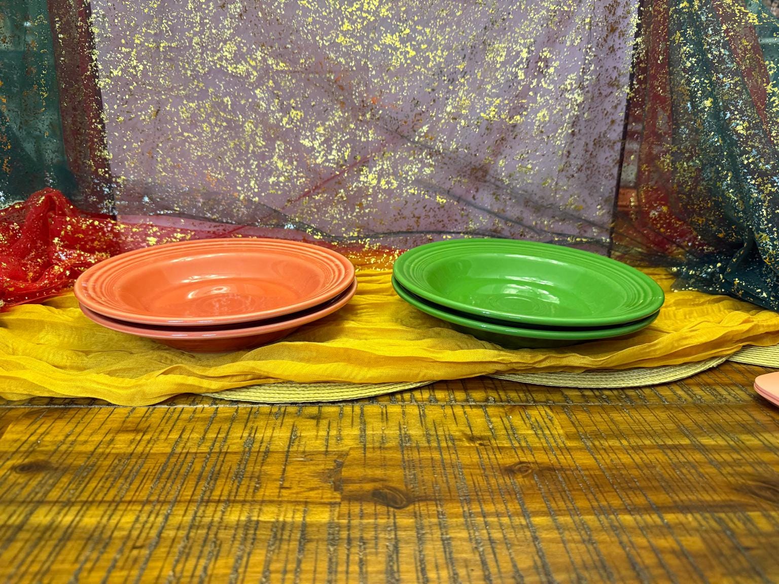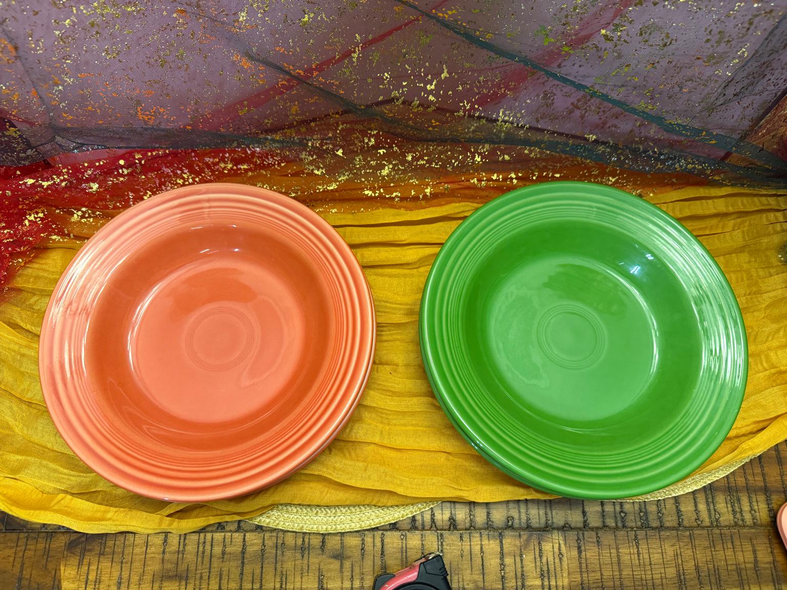 Both Persimmon and Shamrock Green are retired Fiesta colors, loved by collectors for their bold hues and glossy finish. These bowls are durable, dishwasher safe, and made for everyday use or special occasions.
