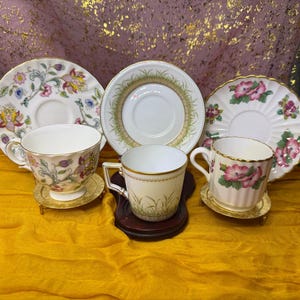 Every piece includes its matching saucer and bears the official hallmark beneath. Perfect for collectors, display cabinets, or as a thoughtful vintage gift for tea lovers.